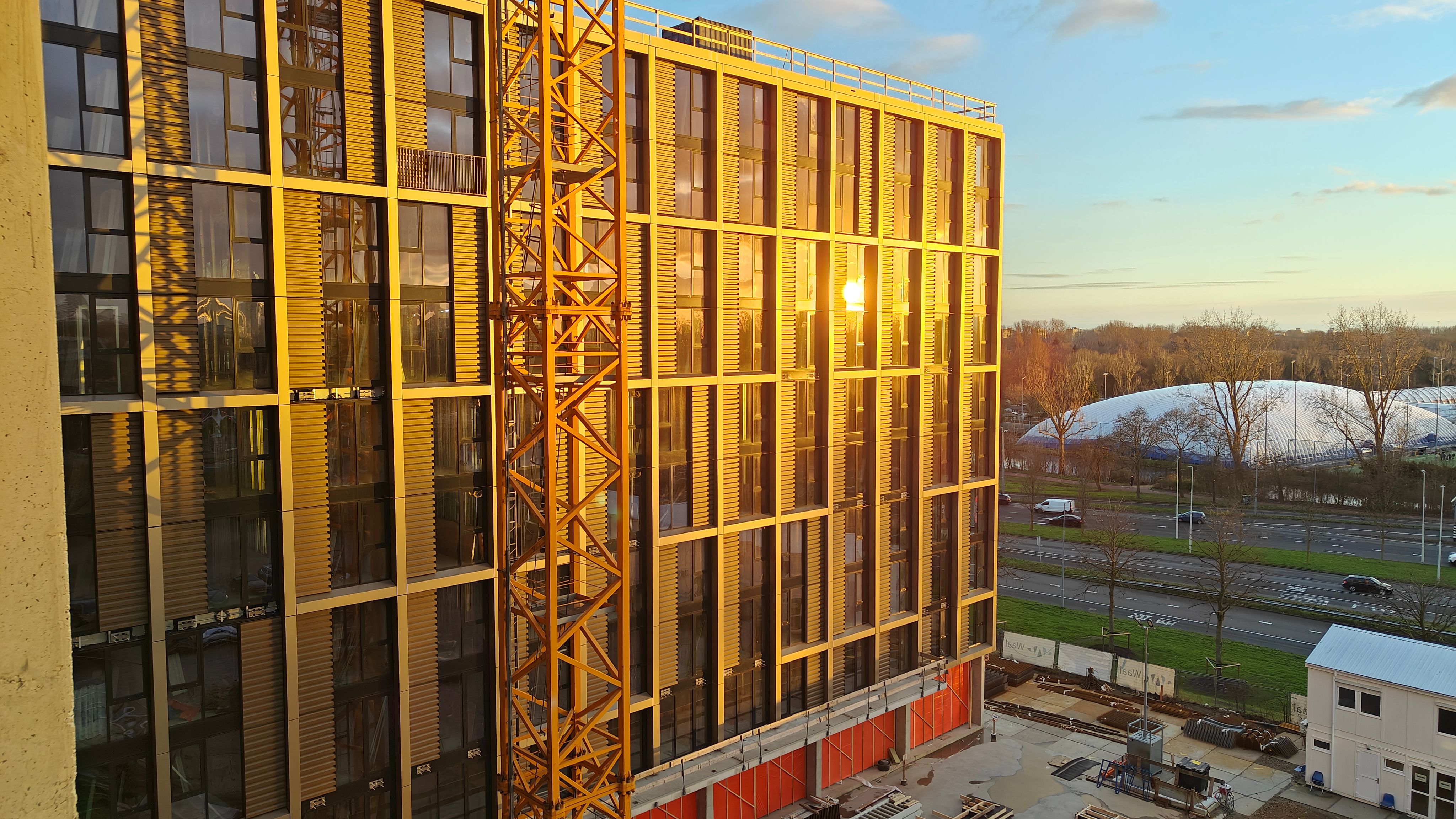 Right next to Erasmus University, the building will accommodate 614 homes for students, starters and young professionals with many shared facilities, underground shared mobility and a roof garden. The multifunctional residential building creates liveliness at ground level. In the plinth there is space for catering, sports, co-working space and other activities with which the building contributes to the living and working experience of this location and the surrounding neighbourhoods. On the 10th floor is a roof terrace with fantastic views of the Rotterdam skyline. Adjacent to the roof terrace are the collective spaces for residents. Here they can cook together, watch films, make music and relax.