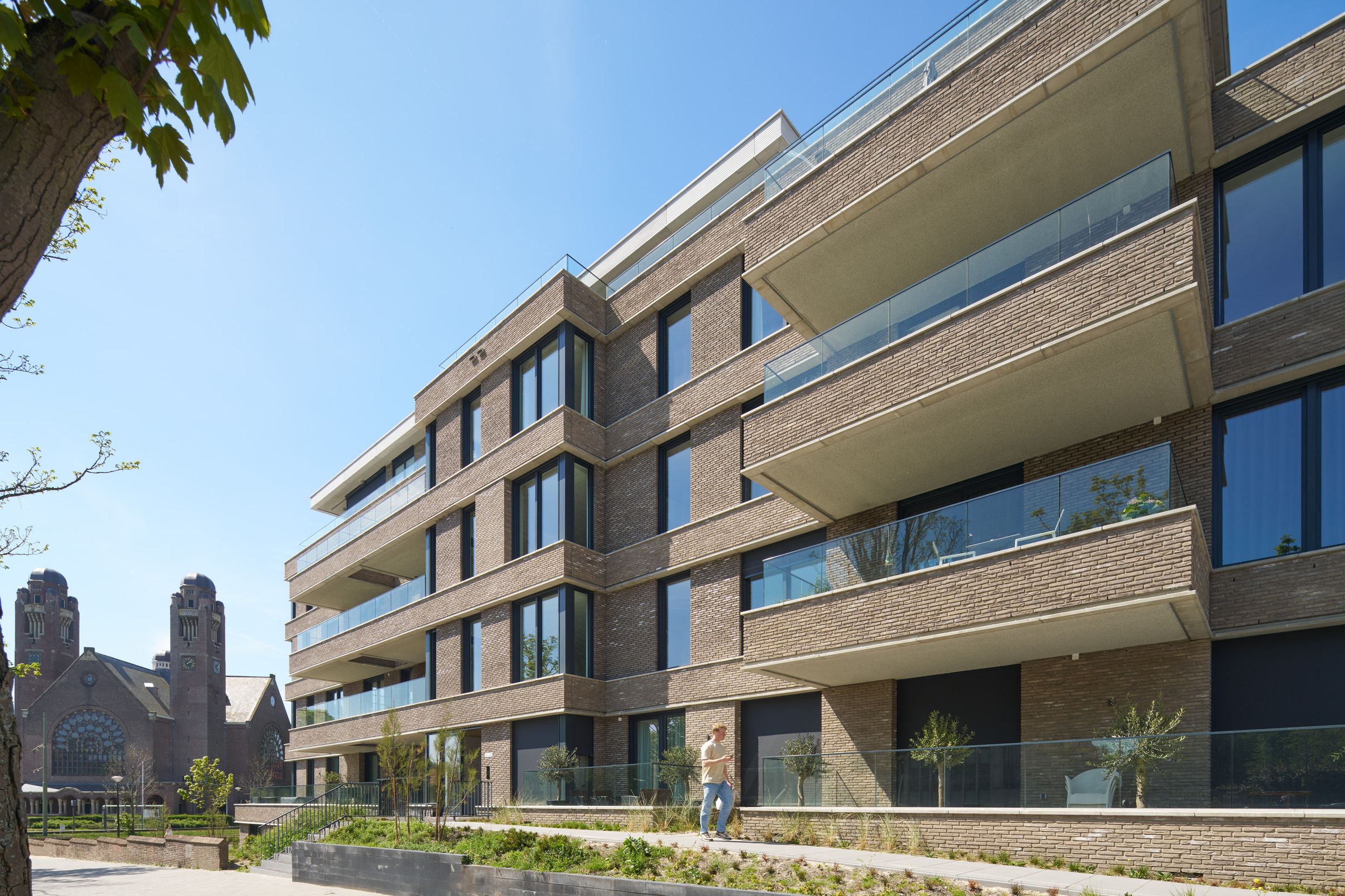Op de kruising van de Nieuwe Duinweg en de Nieuwe Parklaan is een woonproject gerealiseerd: 29 luxe appartementen in een gebouw dat gedeeltelijk hergebruikt is van het voormalige kantoor op Nieuwe Duinweg 24. Alleen het betonnen casco is behouden, terwijl de gevels, wanden, balkons en het dak compleet vernieuwd zijn. Het ontwerp van Kraaijvanger Architects is geïnspireerd op historische architectuur uit het begin van de 20e eeuw, met zachte grijze baksteen, horizontale betonbanden en royale buitenruimtes per woning. Elk appartement heeft een tuinterras, balkon of dakterras en een weelderige, duinachtige tuin rondom. Ook duurzaam: energielabel A+, geen gas, bodemwarmte voor vloerverwarming en -koeling.
